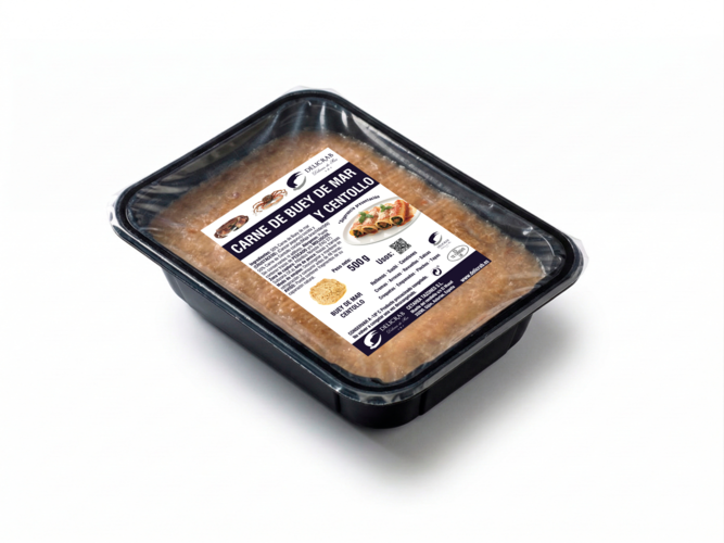 Se trata de una mezcla de carne de centollo y carne de buey de mar. Con la fusión de estos dos sabores se obtiene un producto con un gran sabor y una excelente base para sus elaboraciones.
